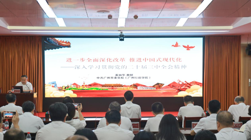 黃麗華緊緊圍繞深刻認(rèn)識(shí)進(jìn)一步全面深化改革的重大意義,準(zhǔn)確理解進(jìn)一步全面深化改革的原則思路和全面把握進(jìn)一步全面深化改革的重大舉措的3個(gè)方面進(jìn)行專題宣講,結(jié)合廣州實(shí)踐和廣州生態(tài)環(huán)境工作,深入淺出,重點(diǎn)闡釋了進(jìn)一步全面深化改革“為何改”“如何改”“改什么”的重大意義和實(shí)現(xiàn)路徑。黃麗華表示,黨的二十屆三中全會(huì)開創(chuàng)了中國(guó)式現(xiàn)代化建設(shè)新局面,為進(jìn)一步全面深化改革、推進(jìn)中國(guó)式現(xiàn)代化提供強(qiáng)大動(dòng)力和制度保障,我們要更加緊密地團(tuán)結(jié)在以習(xí)近平同志為核心的黨中央周圍,加強(qiáng)黨對(duì)進(jìn)一步全面深化改革的全面領(lǐng)導(dǎo),更加注重系統(tǒng)集成,更加注重突出重點(diǎn),更加注重改革實(shí)效,以釘釘子精神抓好改革落實(shí),為以中國(guó)式現(xiàn)代化全面推進(jìn)中華民族偉大復(fù)興作出更大貢獻(xiàn)。