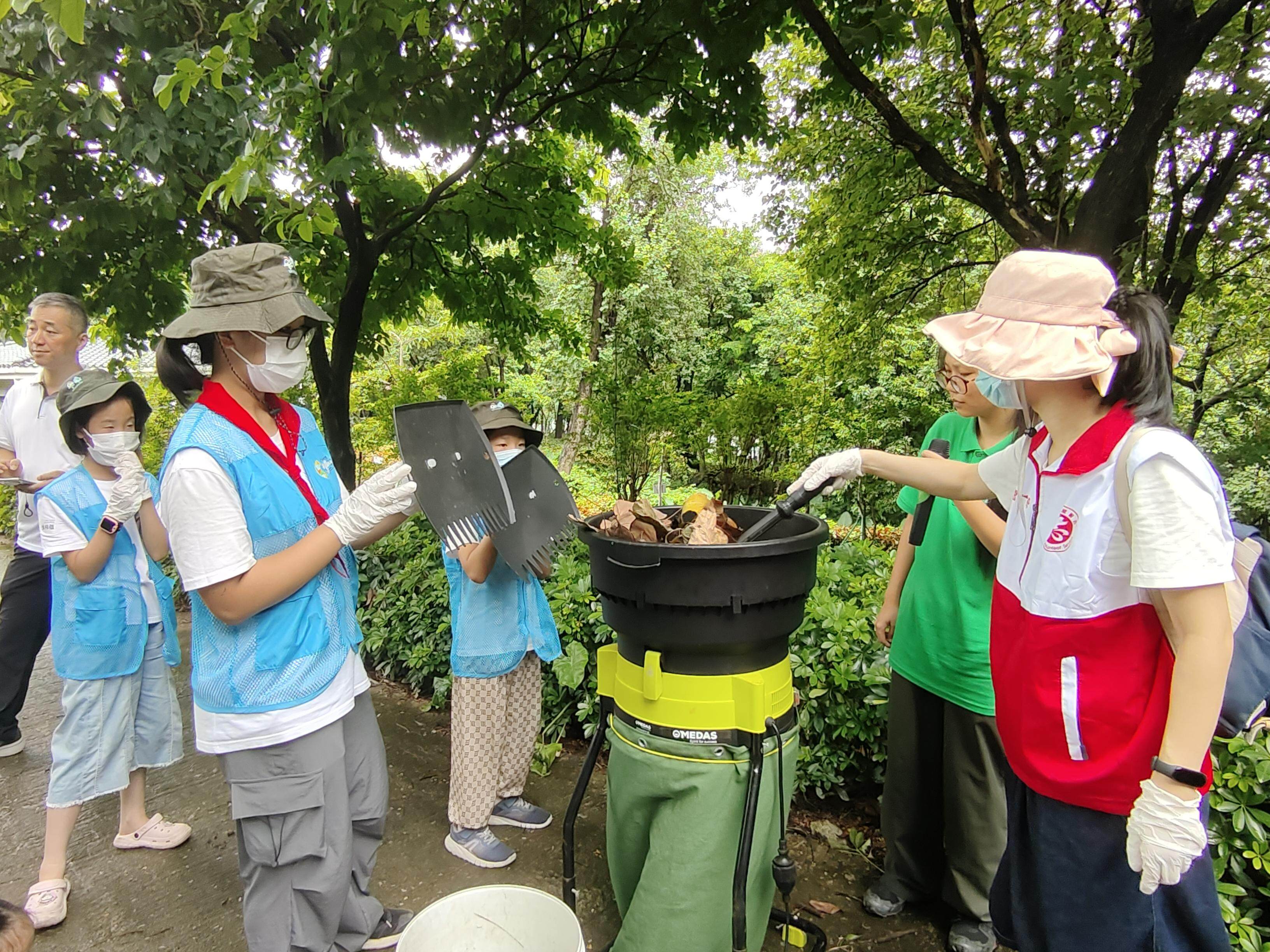 活動現場,志愿者首先學習綠化垃圾的定義、環境影響及資源化路徑知識。隨后進行堆肥實踐操作:使用碎葉機或園藝剪刀將公園中的枯枝落葉切割成2-3厘米長度;將處理后的綠化垃圾與咖啡渣混合攪拌;最后裝入堆肥桶,預留空間以適應物料膨脹和翻動。