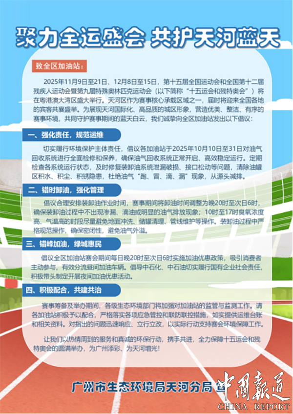 這五封“藍天邀請函”,沒有強制命令,只有真誠的呼吁與共同的約定。大家對設備的一次清洗、生產的一次錯峰、加油時間的一次調整,都是對體育盛會最實在的支持。當運動員在通透的藍天下拼搏,當游客贊嘆“廣州藍”的澄澈,那抹湛藍中必將映著廣州各行各業守護的身影。(黃楚芳 廣州市生態環境局供稿供圖)