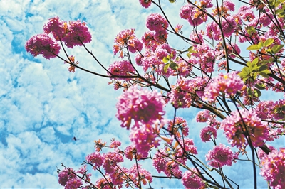 11月14日,閱江中路,藍(lán)天下的紫花風(fēng)鈴木。
