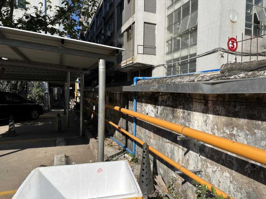 沿園區外墻鋪設燃氣管道。通訊員供圖