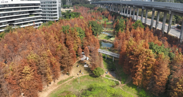 作為廣州市首個(gè)按照“海綿城市”理念試點(diǎn)建設(shè)的生態(tài)景觀,這里的冬日因落羽杉而格外浪漫,每年12月至次年1月,便是落羽杉的最佳觀賞期。