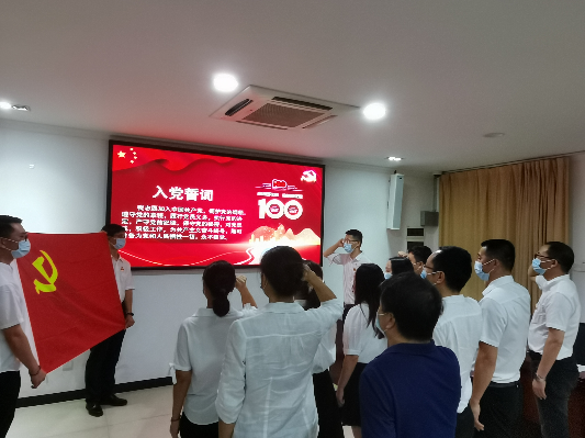 活動上,黨員們莊嚴宣誓、重溫入黨誓詞、合唱紅歌,并為5位7月份入黨的同志頒發 “政治生日”賀卡和黨員徽章。參加活動黨員同志一起學習了習近平總書記在慶祝建黨100周年大會上重要講話,7月份入黨的同志還分享了學習感想。