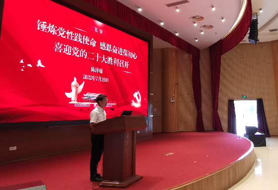 2022年7月29日下午,廣東省廣州生態環境監測中心站在大樓報告廳舉辦2022年黨員講壇,站黨委、站班子、中層以上領導、在職黨支部黨員、入黨積極分子和入黨申請人共80多人參加,開展了重溫入黨誓詞、站黨委代表講黨課和支部黨員代表分享“書香·監測”讀書心得等活動。