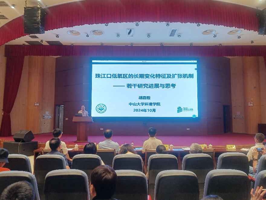 會上,吳志峰教授講授遙感技術在水生態環境保護方面的應用,詳細介紹了水環境遙感的概念、原理,在環境監測方面的優勢,水環境基本指標的反演方法,遙感結果分析及實際應用案例分享。胡嘉鏜教授以“珠江口低氧區的長期變化特征及擴張機制—若干研究進展與思考”為主題,詳細介紹長時間觀測序列的珠江口及香港海域低氧區長期變化特征及驅動因子等實際案例,通過過程模擬珠江口低氧區長期擴張及主控機制,展開珠江口海域低氧長期擴張以及珠三角河口區域河流低氧等問題的研究與探討。曹英杰副教授以氮同位素為切入點,介紹了氮同位素示蹤體系技術原理,在污染來源解析及氮素轉化過程等示蹤方面的應用場景,講授面向環境管理的污染溯源基本流程、效果、技術限制并提出解決問題的途徑辦法。