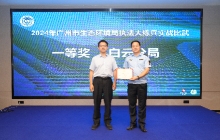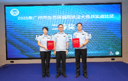 近日,在2025年廣州市生態環境執法大練兵中,廣州市生態環境局白云分局(以下簡稱“白云分局”)憑借過硬的執法能力和良好的實戰表現獲評二等獎。隊員朱杰立足自身扎實的執法知識與豐富執法實戰經驗,在模擬執法場景中快速精準取證、科學判斷,獲評“表現突出選手”。比賽現場還公布了2024年廣州市生態環境執法大練兵實戰比武結果,白云分局榮獲一等獎。