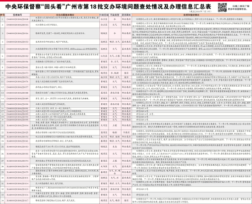 [廣州日報]中央環保督察“回頭看”廣州市第18批交辦環境問題查處情況及辦理信息匯總表