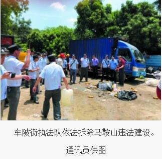 行動中,車陂街道辦事處副主任陳宏山帶領街執法隊聯合安監部門、天坤社區居委會、安保特勤等,對馬鞍山環城高速公路南側違法搭建的鐵棚和板房進行依法強制拆除。據了解,此次拆違行動共出動102人,大型鉤機一臺,共拆除300多平方米的違章搭建。