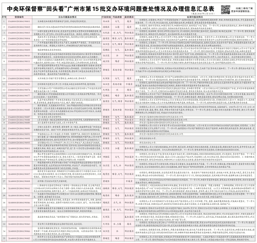 [廣州日報]中央環保督察“回頭看”廣州市第15批交辦環境問題查處情況及辦理信息匯總表