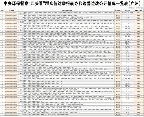 [廣州日報]中央環保督察“回頭看”群眾信訪舉報轉辦和邊督邊改公開情況一覽表(廣州)