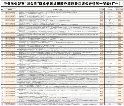 [廣州日報]中央環保督察“回頭看”群眾信訪舉報轉辦和邊督邊改公開情況一覽表(廣州)