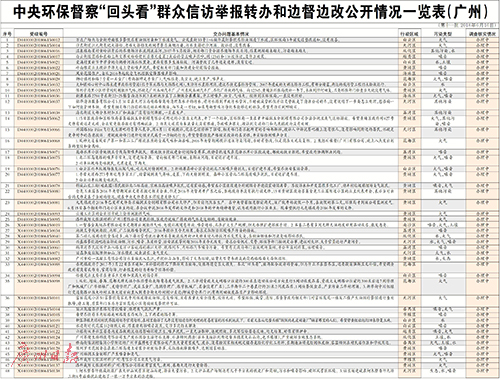 [廣州日報]中央環保督察“回頭看”群眾信訪舉報轉辦和邊督邊改公開情況一覽表(廣州)