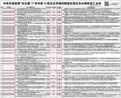 [廣州日?qǐng)?bào)]中央環(huán)保督察“回頭看”廣州市第12批交辦環(huán)境問(wèn)題查處情況及辦理信息匯總表